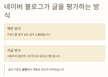 네이버는 더 이상 얼마나 열심히 썼는가를 보지 않습니다. 대신, 사용자의 질문에 구조적으로 답하고 있는가를 봅니다.